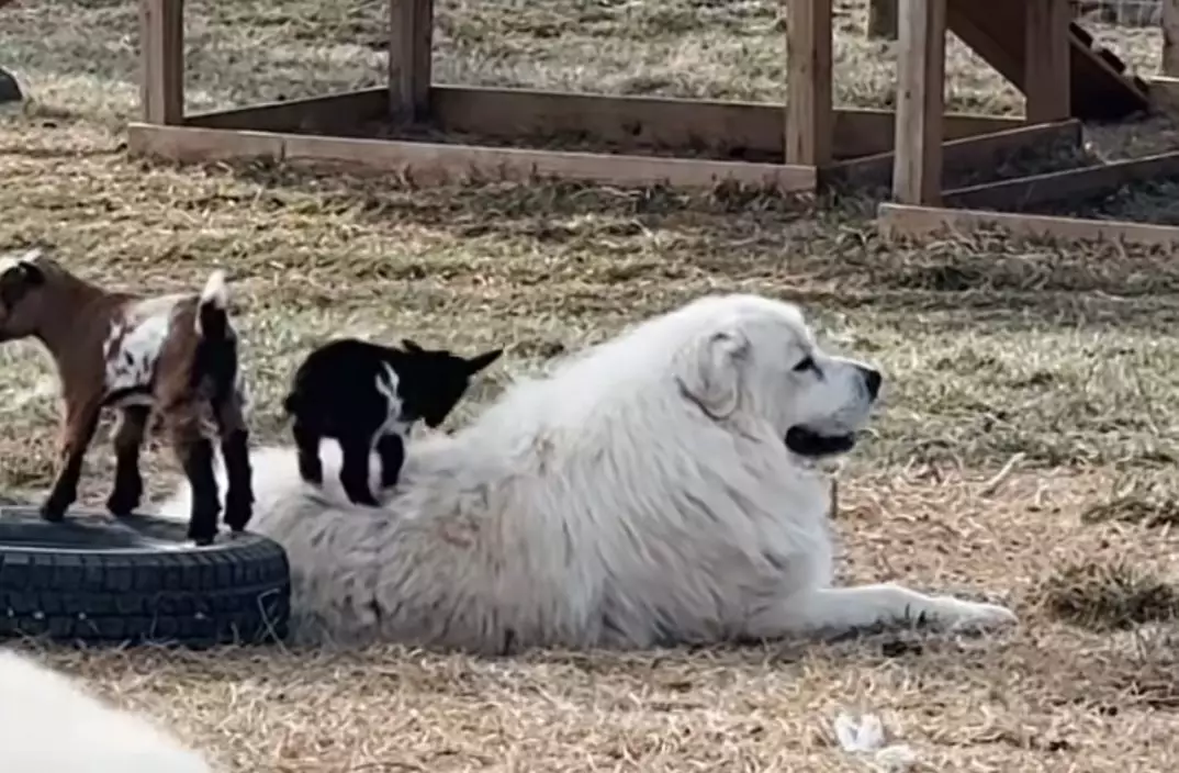 農場主人表示,小山羊與大比利牛斯犬Badger自幼相識,長時間相處下建立深厚感情,彼此之間宛如家人般互相依偎照顧。影片可見,小山羊幾乎整天依偎在大白狗身旁,不時趴在牠的身上或緊貼入睡,畫面極為溫暖療癒。