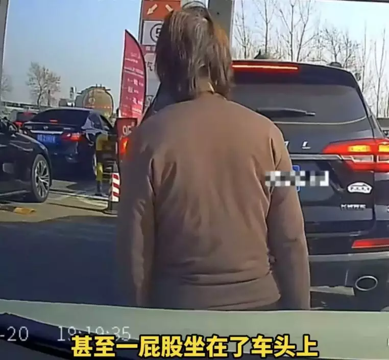 江蘇加油站有男車主遭遇離譜的「人肉打尖」,一名陌生女竟躺在其車輛引擎蓋上阻去路,強行插隊,令他相當無奈。