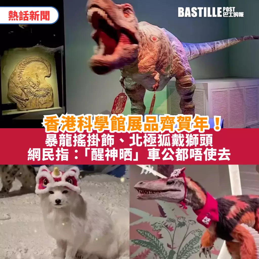 農曆新年雖過,香港科學館卻仍洋溢節日喜趣。近日有網民在社交平台分享,館內常設展「滅絕 · 新生」的展品竟換上賀年裝扮!