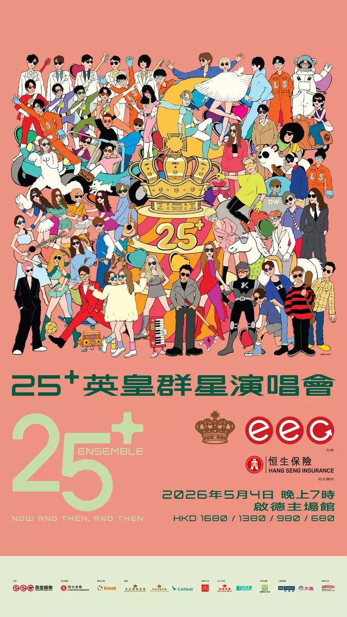 由英皇娛樂主辦、英皇鐘錶珠寶、英皇金融及國泰贊助的《25+英皇群星演唱會》將於2026年5月4日在啟德體育園主場館盛大舉行。演唱會總投資額逾億元,屆時英皇娛樂旗下藝人包括天王天后、影帝影后、實力唱將與耀眼新星將齊聚一堂,上演破天荒的跨世代驚喜合作,讓陪伴大家走過 25 年的經典旋律以創意聯乘形式震撼重現,以別開生面的形式向觀眾呈現不一樣的經典歌曲。