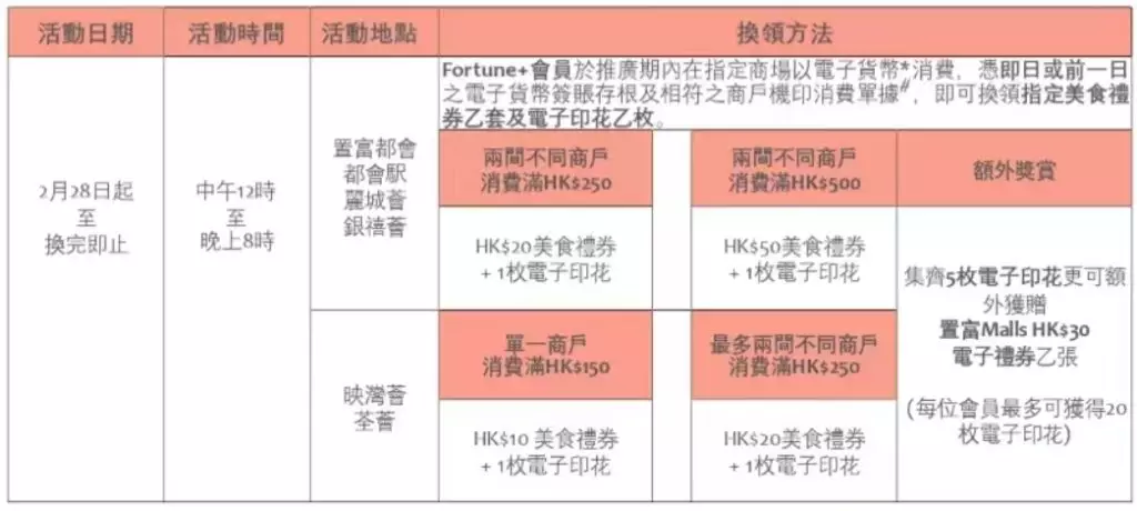 # 只接受由2月28日起發出之有效消費單據,每張消費單據必須HK$100或以上