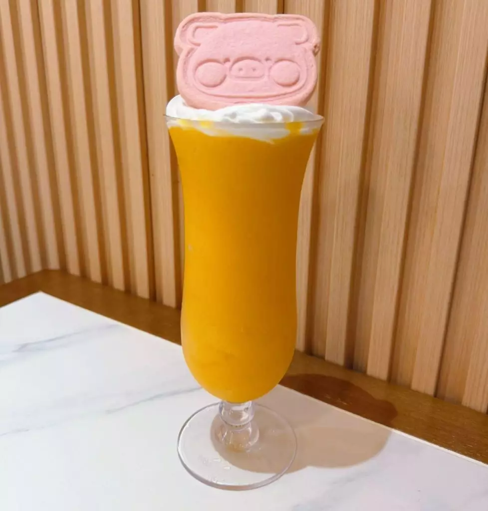 芒果沙冰HK$69,粒粒鮮甜芒果打成香濃沙冰,配上可愛粉色Lulu豬和忌廉,可愛滿瀉!