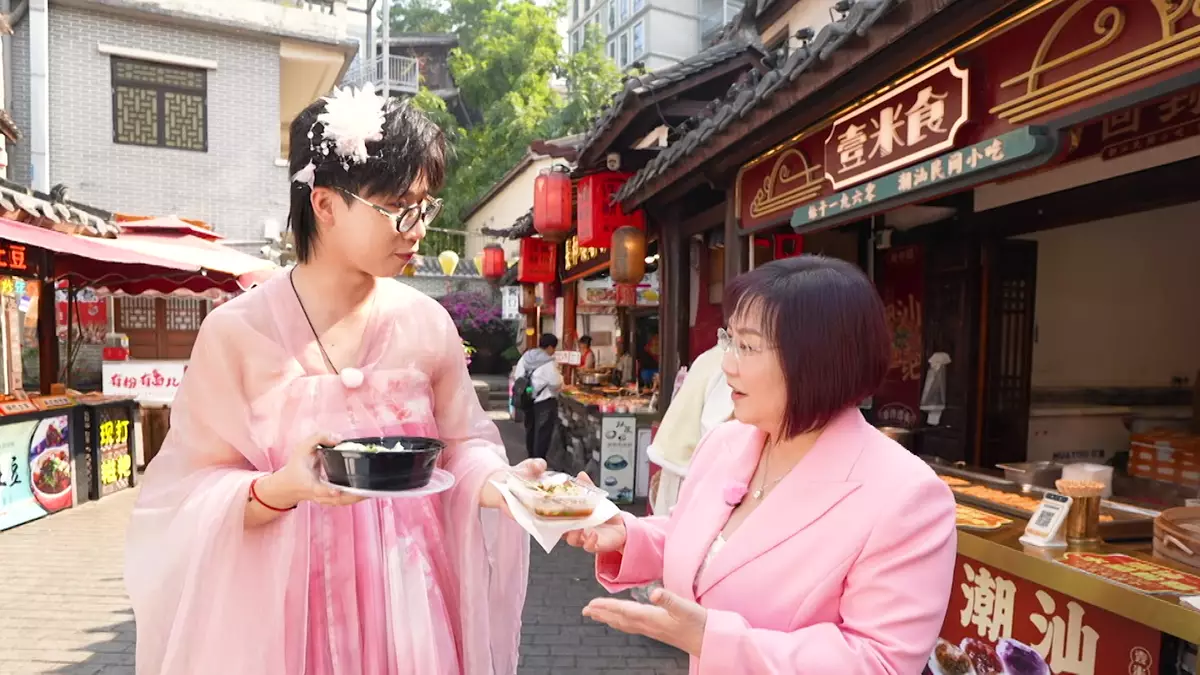 麥玲玲帶林智樂、潘靜文及胡敏芝暢遊甘坑古鎮。