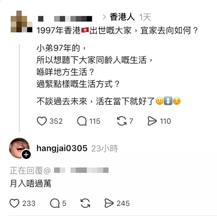 事緣有網民於Threads發文詢問:「1997年香港出世嘅大家,宜家去向如何?」希望了解同齡人的生活狀況。沒想到,男團 ROVER 的28歲成員陳鎮亨(亨仔)竟親自留言回覆:「月入唔過萬。」短短五個字,隨即引爆討論。