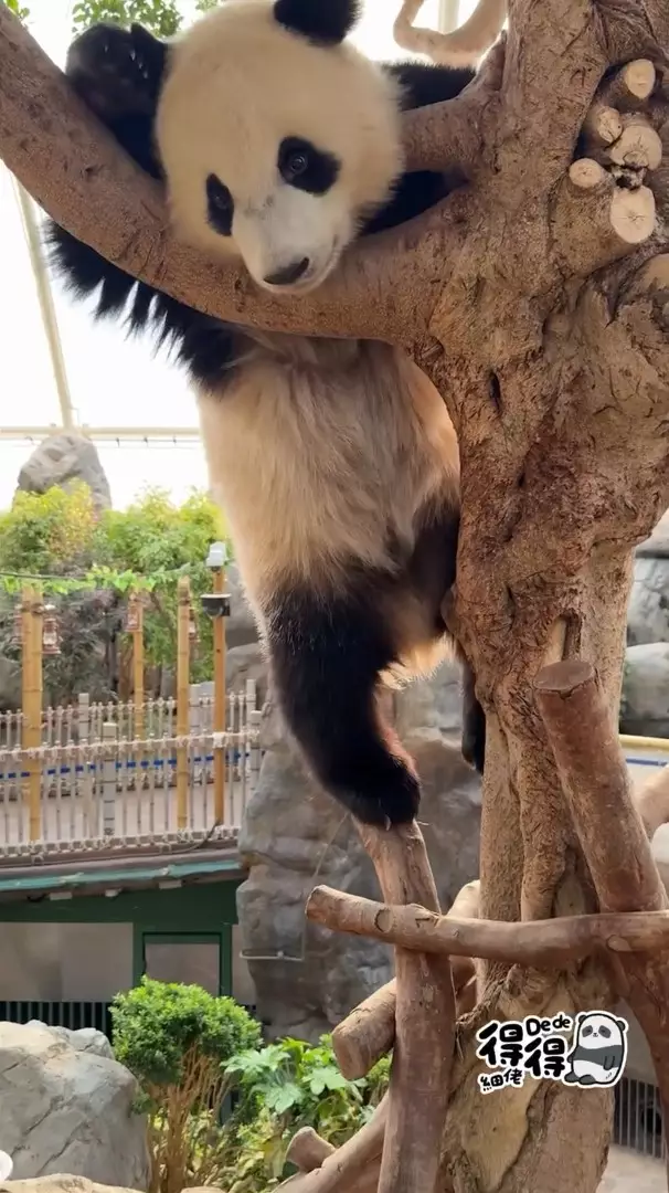 家姐「加加」同細佬「得得」每天由早上10點到下午4點都要在外場「營業」,但收工後飼養員就要收貓,引導兩姐弟回到後場內舍。不過,曾經有一段日子,兩隻熊貓B都高高掛在樹上,懶理奶爸奶媽的呼召,有時要花上很長時間才哄到兩姐弟落樹。