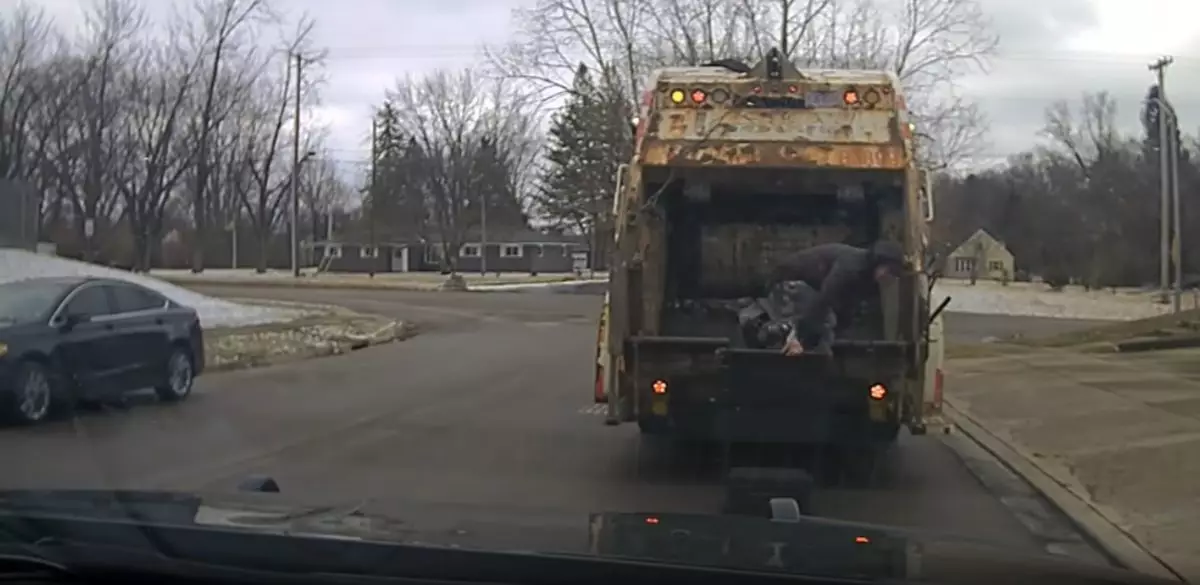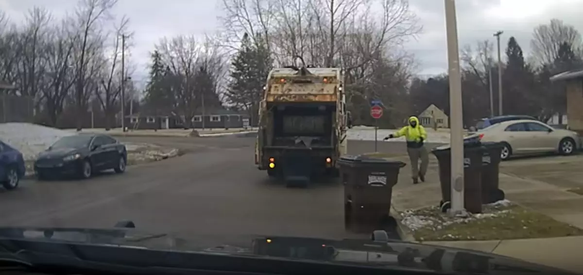 近日,美國俄亥俄州休伯高地(Huber Heights)警察局(HHPD)公佈一起驚險事件。一名清潔隊員準備將垃圾桶倒入垃圾車時,赫然發現桶內竟藏有一名活生生的男子。清潔隊員雖然一度受驚,惟仍保持冷靜,迅速打手勢向後方警車暗示,最終協助警方成功拘捕涉案疑犯。