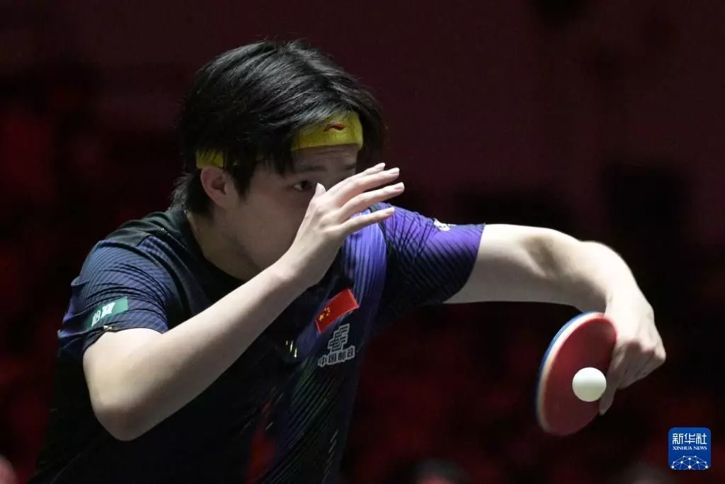 王楚欽在新加坡大滿貫男子單打十六強比賽中擊敗對手。新華網圖片