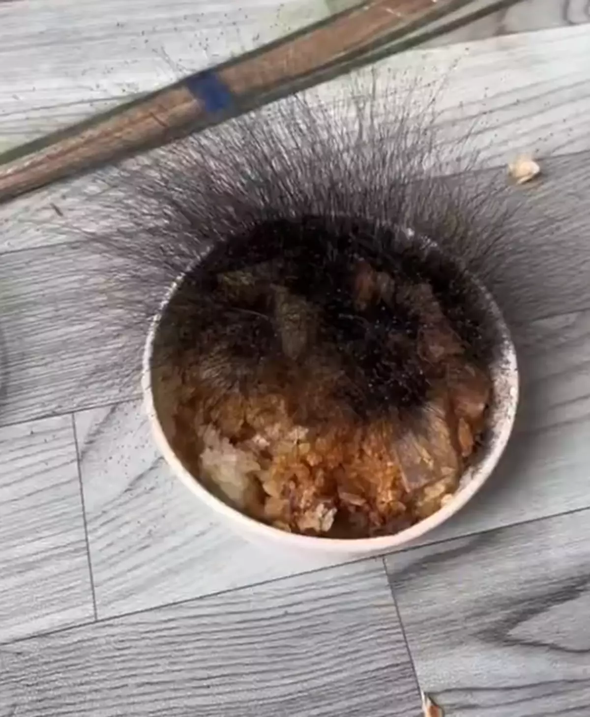 牛肉飯發霉生出濃密「頭髮」