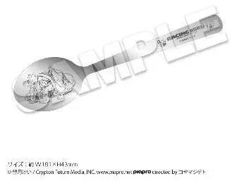 匙柄身印有望月けい繪畫的賽車初音 2025 圖樣,整體設計簡潔。金屬湯匙可用作日常享用甜品或食物,亦可與同系列餐具立牌一同展示,讓每一頓飯都充滿應援車隊的樂趣。