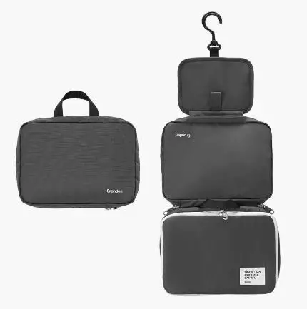 旅行收納袋淺米色色調,溫柔清新。袋身採用防水、耐用且易清潔面料,三段式折疊設計由 2.3L 擴展至 4.3L,打開後多格分層一目了然,方便一家大小共用洗護用品。