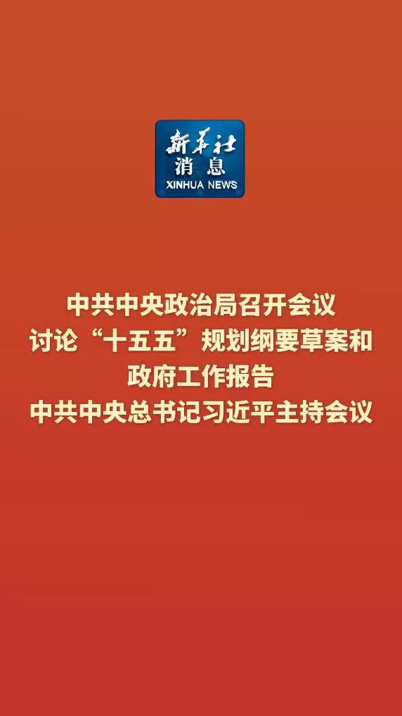 中共中央政治局星期五召開會議,討論國務院擬提請第十四屆全國人民代表大會第四次會議審查的「十五五」規劃綱要草案稿,及審議的政府工作報告稿。中共中央總書記習近平主持會議。
