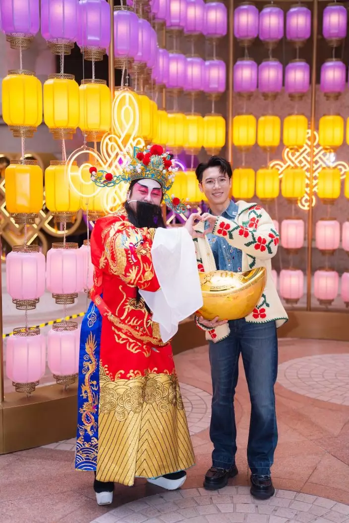 「喜」感十足的Stanley在露天廣場「行大運」,先後跟五大主題賀年裝置包括3.5米高的巨型「富貴如意結」、沉浸式光影空間「如意映燈廊」、炮仗造型的「迎福願影萬花筒」、互動裝置「結福漫花拱」,以及透過現代美學重新演繹傳統如意結的「呈祥錦繡雙結」裝置型爆打卡,散發滿滿的喜氣與幸福!Stanley說:「我與Alina都是有儀式感的人,喜歡有節日氣氛的地方,時代廣場當然是首選,露天廣場的五大新春裝置融合傳統新春元素與現代設計美學,而且配合日夜不同燈光會變化出不同效果,加上女仕們最愛的花海,我推薦大家趁元宵佳節帶另一半來打卡,浪漫一番!」