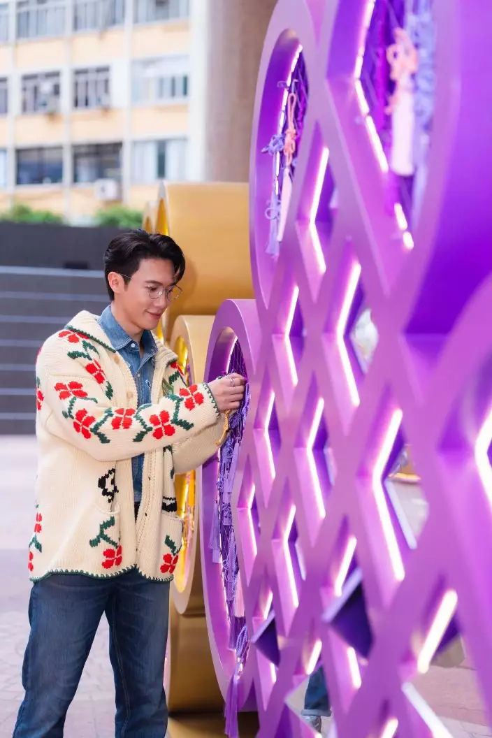 除了對創意十足的五大新春裝置讚口不絕外,Stanley最欣賞「手繫如意結」互動體驗,只需掃描二維碼便可學習如何親手繫如意結,更可掛在場內指定的裝飾之上,不斷累積祝福,亦象徵好運愈結愈多。他說:「一直自覺是個幸運兒,當年參加《全民造星》後可以加入MIRROR,因而獲得一班fans為我應援打氣;近年在演戲上也多了機會讓我證明自己;如今我都即將展開人生新一頁,所以希望我親手繫好的如意結可以將幸運與幸福傳開去,祝福大家馬上找到真愛,哈哈!」