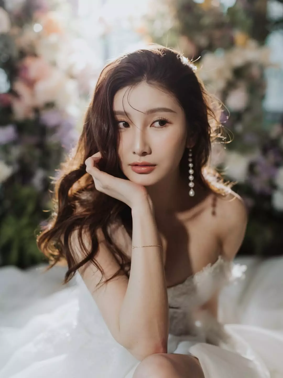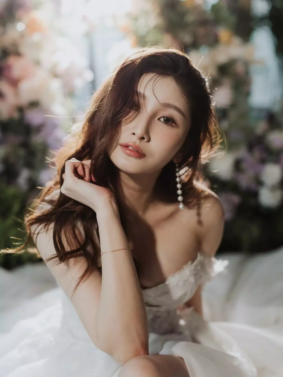 擁36C魔鬼身材的沈殷怡(Shirley)近日在社交平台大派福利,上載一輯低胸婚紗照。她時而輕撥秀髮放電,時而托頭賣萌,C Cup「導彈」上圍呼之欲出,性感而不失高貴。