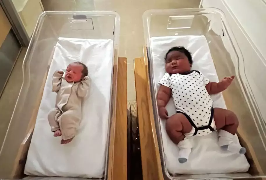 同日誕「巨嬰」與「迷你BB」 體型對比強烈