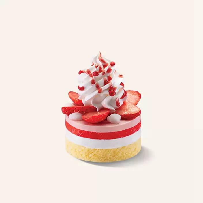 除了香甜誘人的士多啤梨,蛋糕更加入口感軟糯的麻糬與酸甜平衡的草莓醬,滋味綻放交織。中層夾以如雲朵般輕盈、柔軟細緻的戚風蛋糕,整體甜而不膩,口感豐富,絕對是與三五知己共享的完美甜點之選!