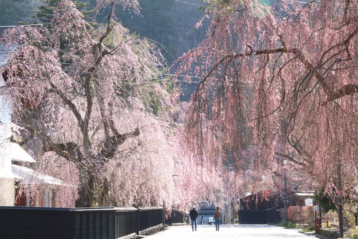 素有「陸奧小京都」之稱的角館武家屋敷通,在春日櫻花點綴下更顯風雅。武家宅邸的黑色木造圍牆,與垂枝櫻花相映,交織成柔美景致。沿著古街綿延而成的櫻花並木,只需漫步其中,便能充分體會日本獨有的優雅氛圍與永恆魅力。