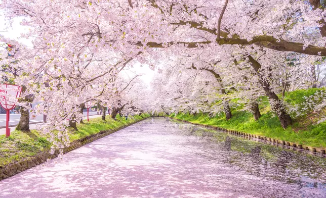 弘前公園被譽為日本「三大賞櫻名所」之一,園內約有兩千六百株櫻花樹競相綻放,為日本首屈一指的賞花(hanami)勝地。其中最令人著迷的景象之一為「花筏 (hanaikada)」,當花瓣飄落,鋪展於弘前城護城河上,彷彿粉色花毯,營造出如夢似幻、季節限定的絕美景色。