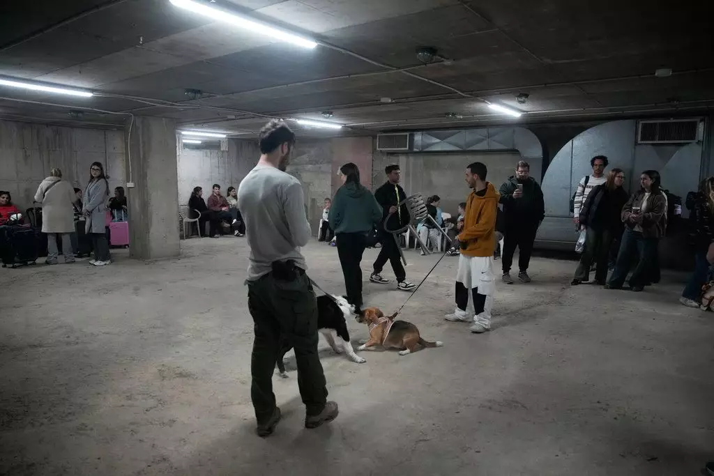 在以色列特拉維夫,民眾到地下防空設施躲避。AP圖片