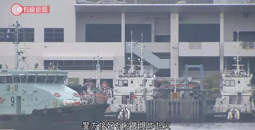 海事處職員巡邏期間發現一艘海事處船隻發生爆炸。有線新聞影片截圖