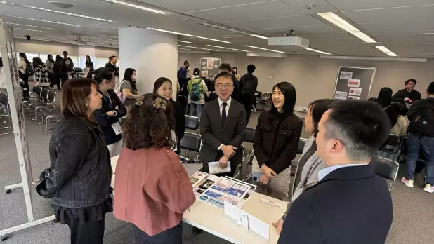 施俊輝與特殊教育需要統籌主任交流,分享運用人工智能支援有特殊教育需要學生的經驗和得着。(局中人語)