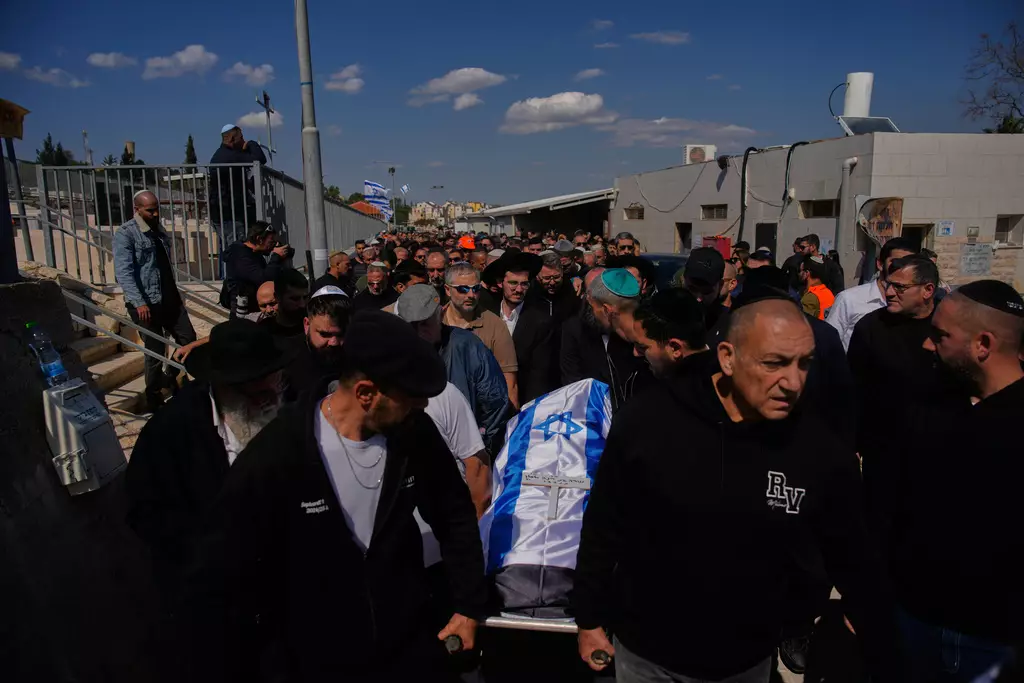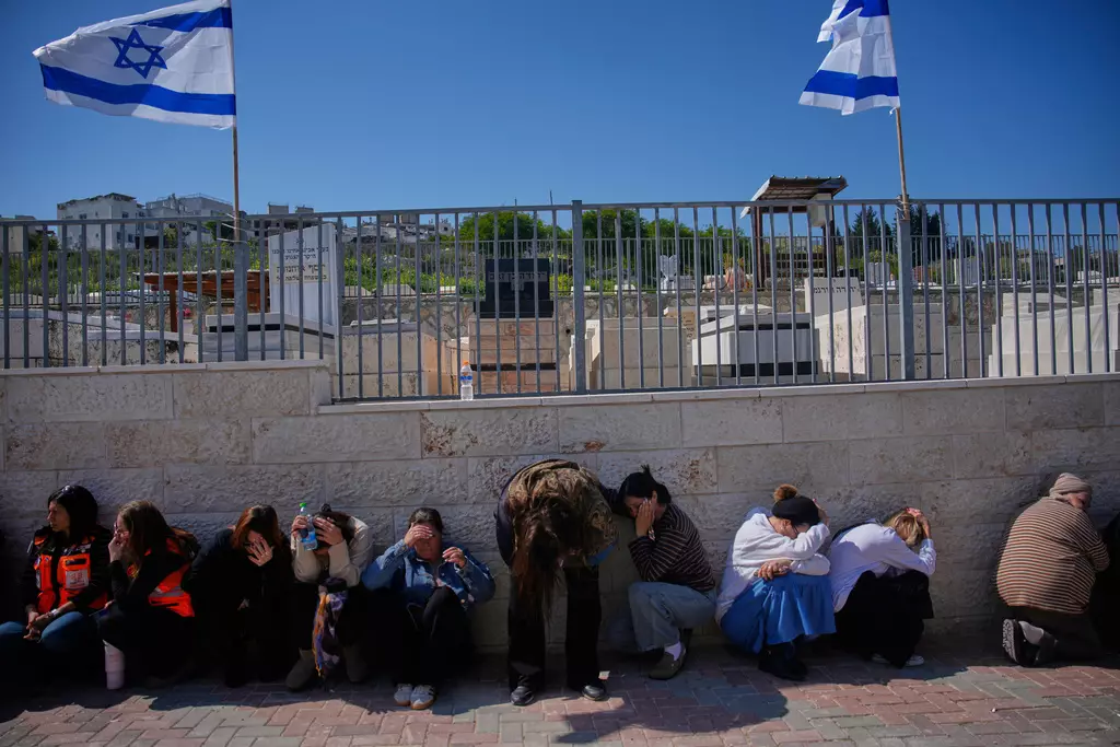 有以色列出席喪禮人士在伊朗導彈來襲時尋找掩體。AP圖片