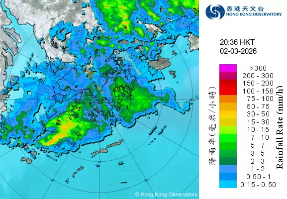 天文台在晚上7時50分,發出黃色暴雨警告信號。