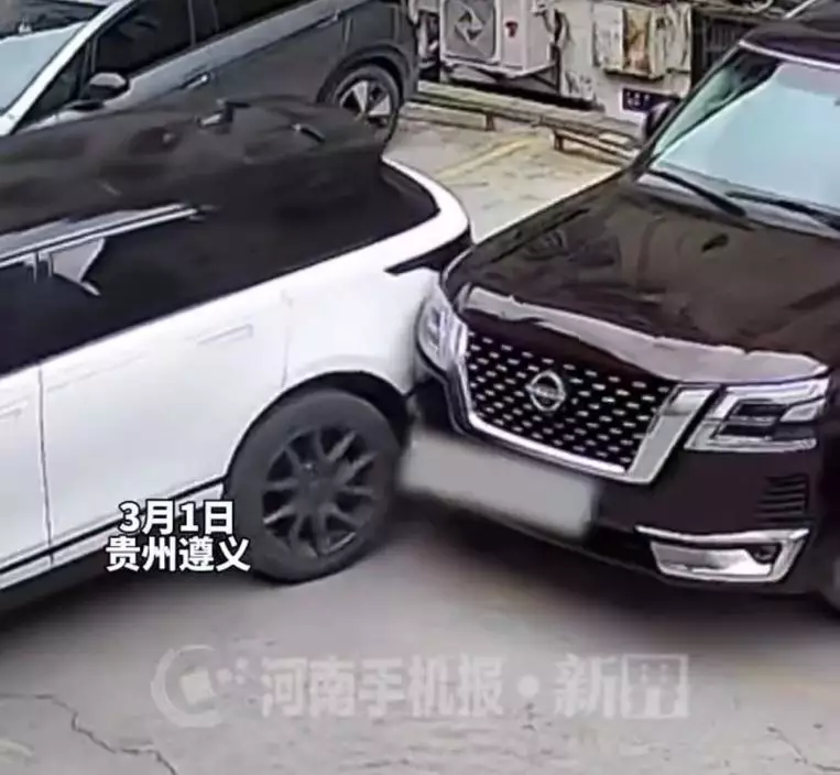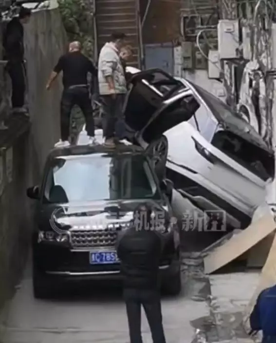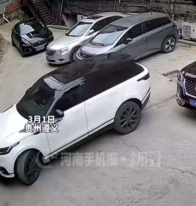 3月1日,貴州遵義發生一宗驚險交通意外,一名私家車司機在倒車期間疑因過度緊張,誤將油門當成煞車踩下,導致車輛瞬間失控暴衝,從路旁邊坡直墜而下,期間先擦撞旁邊一輛日產休旅車,之後更直接「騎上」停泊於下方的一輛路虎,導致兩輛無辜車輛嚴重損毀,現場情況相當駭人。