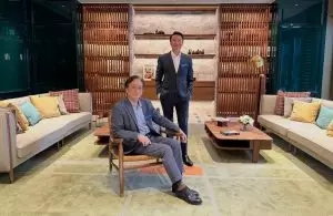相片說明:「高臨」住客會所 CLUB TOPSIDE 讓住戶在繁忙都市中感受到寧謐舒適。(左起)資本策略地產執行董事何樂輝,以及住宅銷售常務董事畢子鴻。