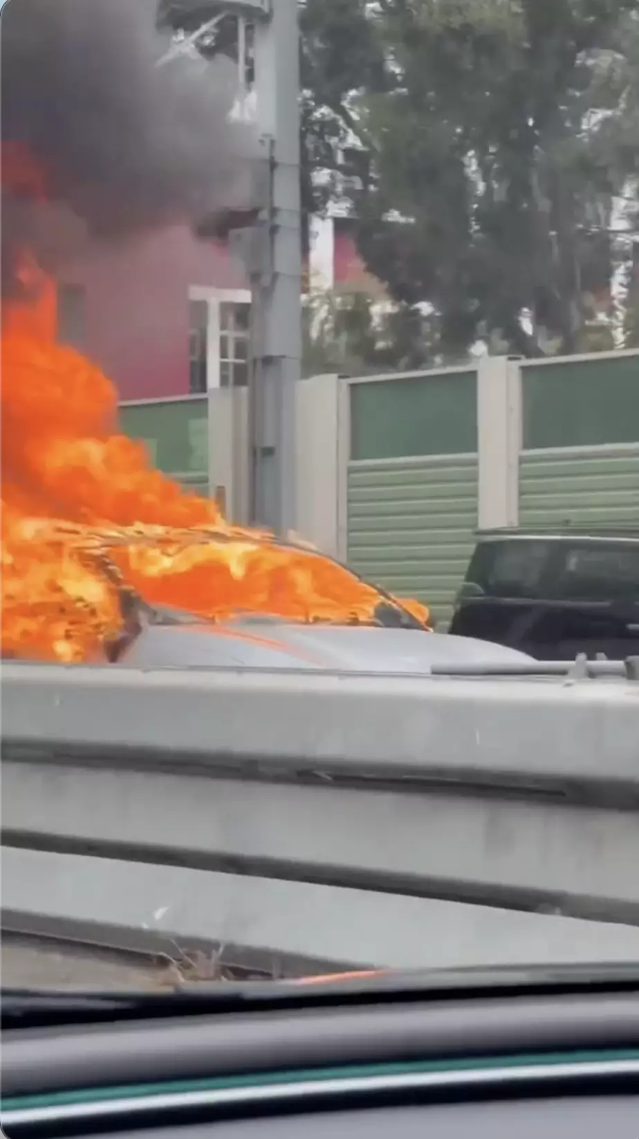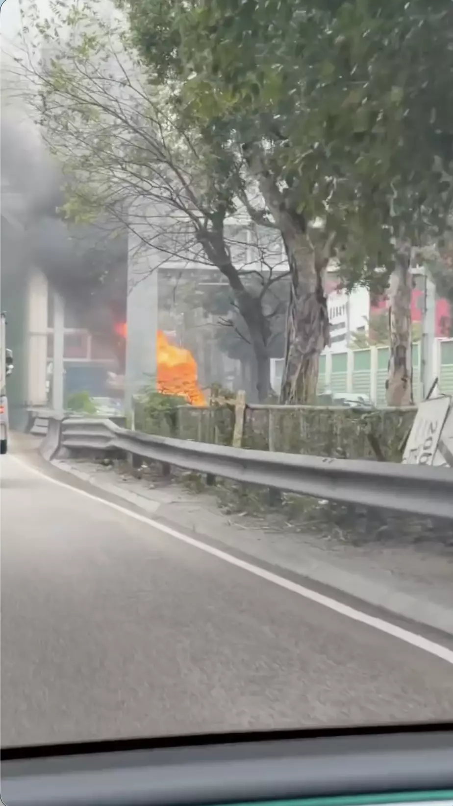 一輛私家車在屯門公路往洪水橋方向起火,無人受傷。fb視頻截圖