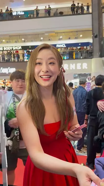 日前她以一頭亮眼金髮配襯火紅色修腰Tube Dress出席《臥底嬌娃》宣傳活動,現場「零濾鏡」生圖曝光後,引來不少好評。她大方與粉絲互動、送飛吻,紅粉緋緋,造型既優雅又帶點性感,成功吸引目光。