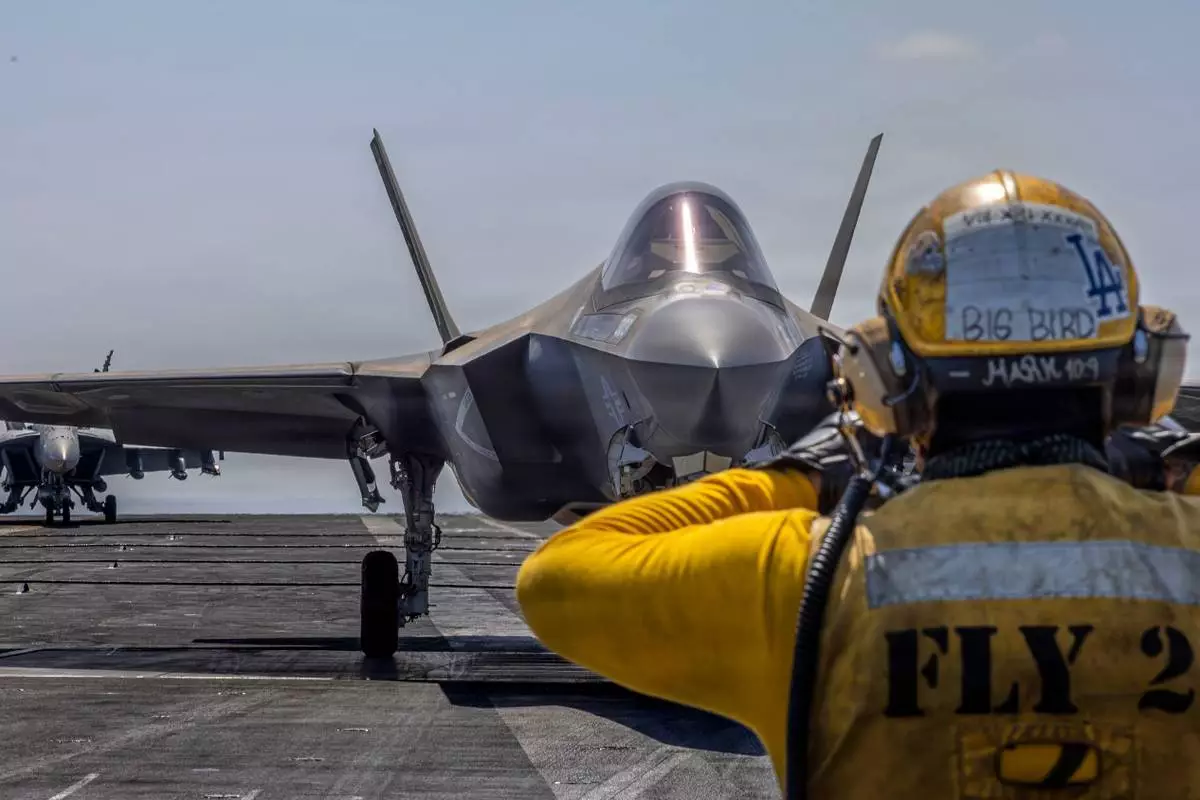 此圖片由美國中央司令部提供,顯示2026年3月2日週一,一架F-35C閃電II戰機在「亞伯拉罕·林肯號」航空母艦(USS Abraham Lincoln (CVN 72))飛行甲板上準備起飛,以支援「史詩狂怒行動」(Operation Epic Fury)。(美國海軍經美聯社發布) AP圖片