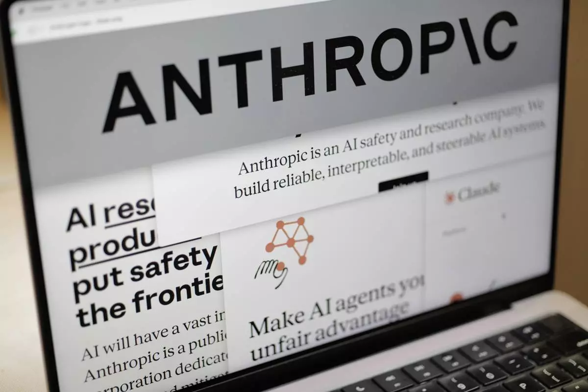 2026年2月26日,星期四,紐約一台電腦屏幕上顯示著Anthropic網站頁面及公司標誌。(美聯社圖片/Patrick Sison) AP圖片