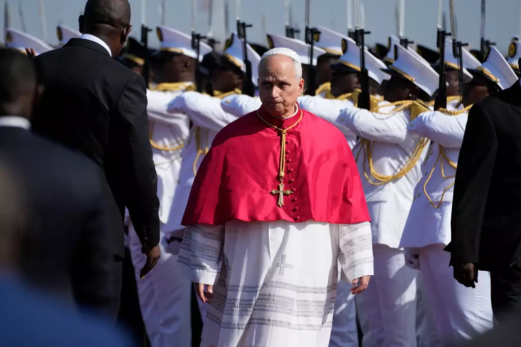 天主教教宗良十四世抵達安哥拉。AP圖片