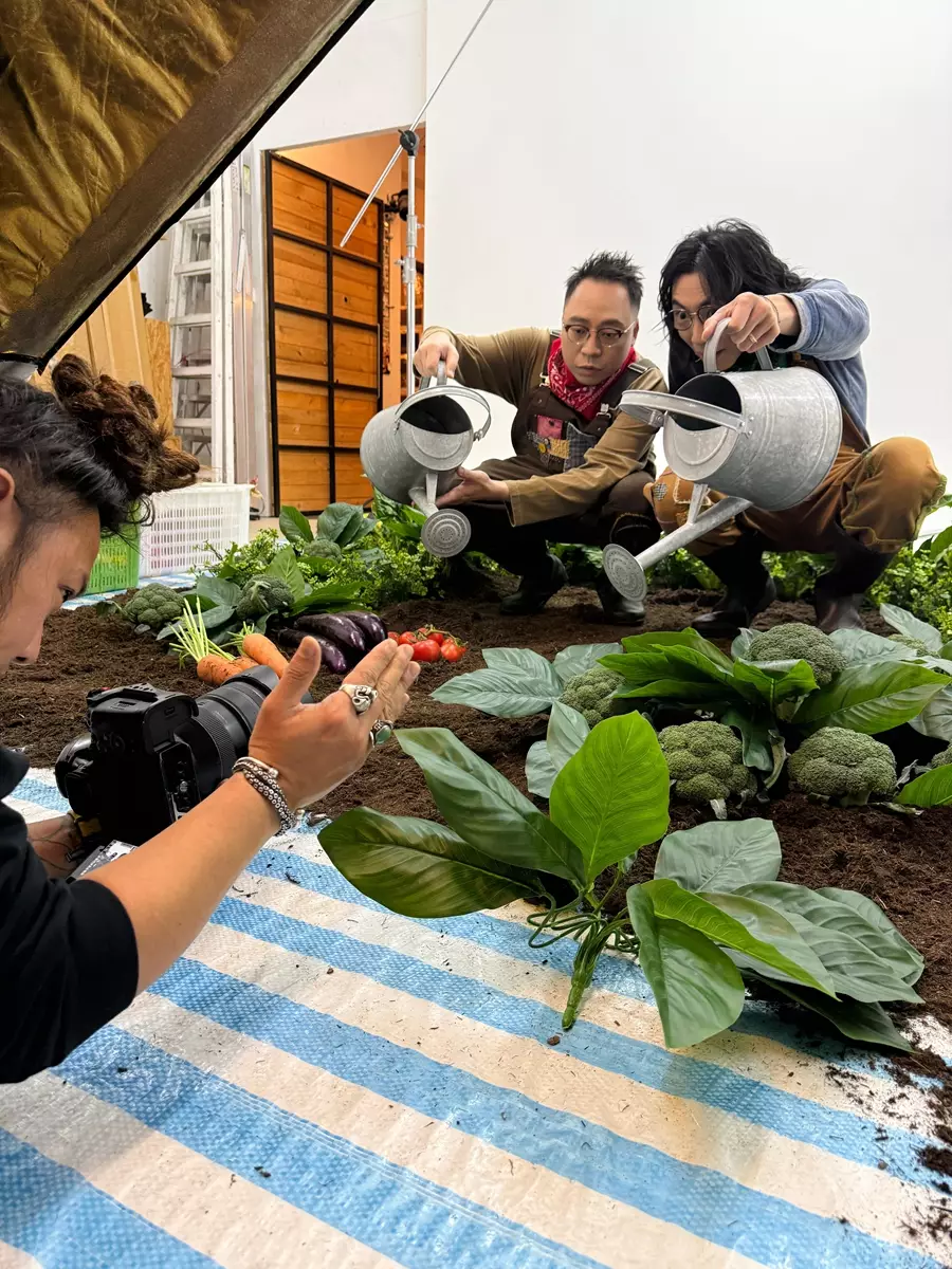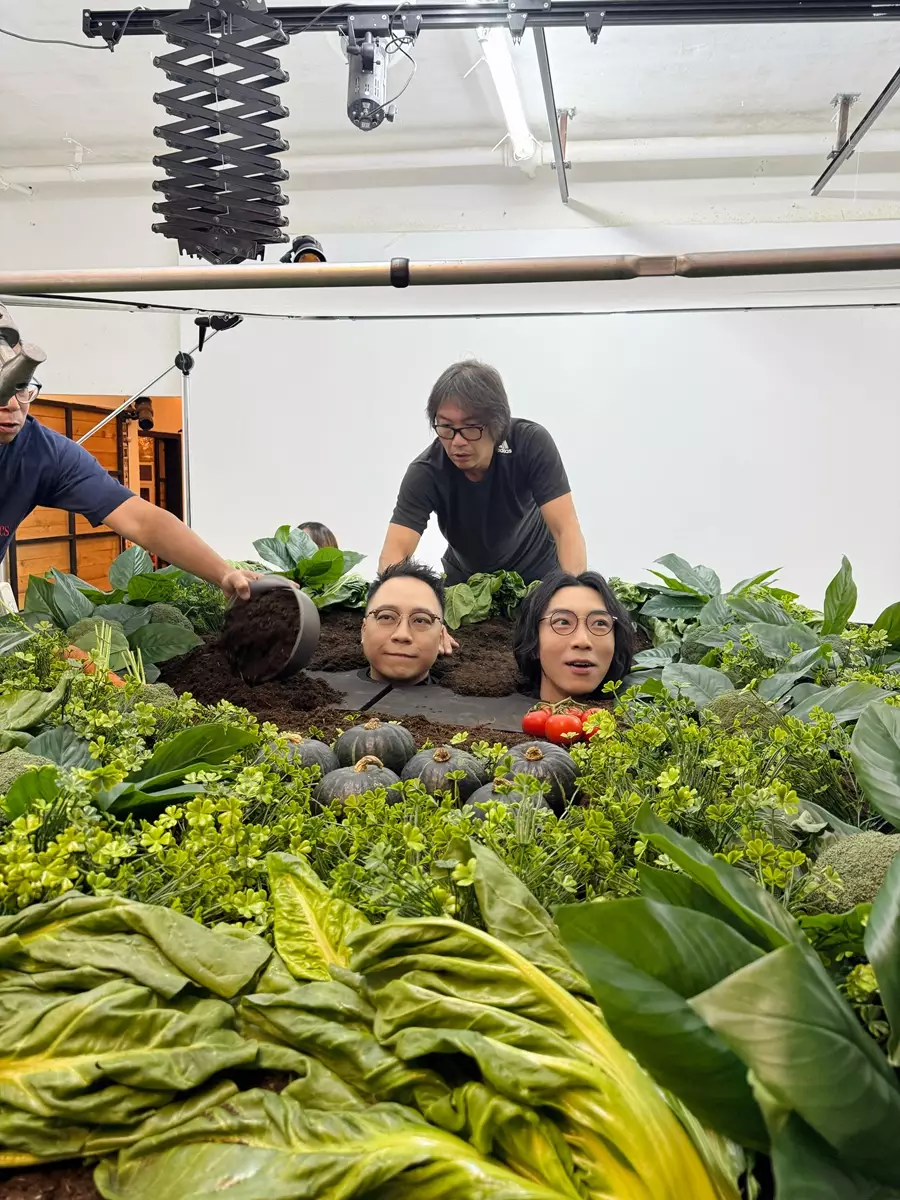 雖然外間一望就認為他們今次這種超現實的海報是AI合成技術的產物,但農夫話你知,拍攝當日團隊可是「嚟真嘅」!工作人員真的動用大量真泥土將兩人身體覆蓋,只露出頭部。兩人雖然被泥壓身,但仍要保持專業笑臉,非常認真!眼見兩人的造型,少點幽默感都難以接受。但農夫就最擅長將忌諱變成笑話,C君更抵死地自抽水:「啲人話兩個死人頭,今次咪種返生佢。」