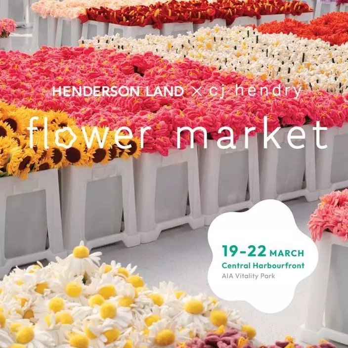 「Henderson Land x Cj Hendry Flower Market」將於 2026 年 3 月 19 日至 22 日,一連四日於中環海濱免費向公眾開放。所有入場人士必須透過活動網站進行預先登記,並憑電子門票方可入場。