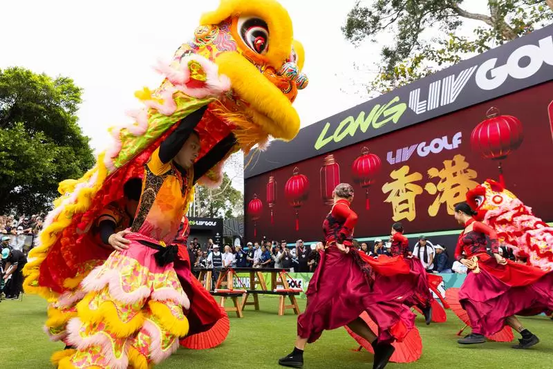 本地表演者於去年在粉嶺香港哥爾夫球會舉行的 LIV Golf 香港站決賽輪,於一號發球台進行表演。