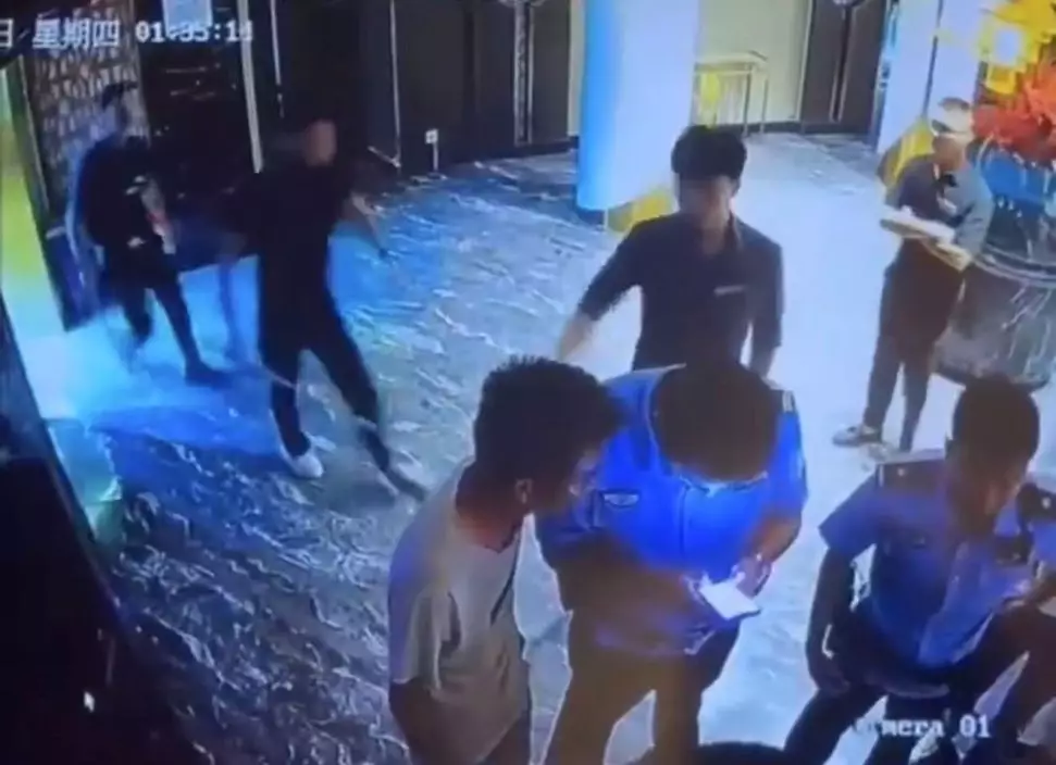 內地黑衣男持器械闖娛樂場所滋事 ,結果因燈光昏暗誤襲臨檢警員,見對方掏槍秒舉手投降。