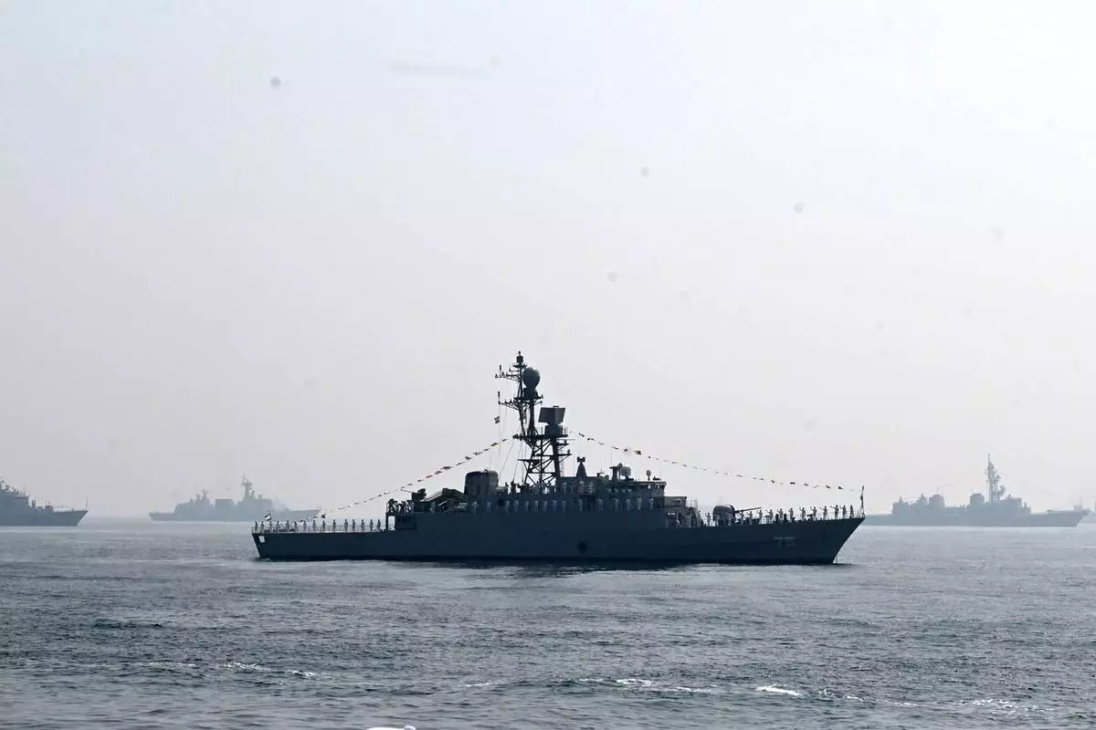 伊朗軍艦「迪娜號」26年2月18日在印度維沙卡帕特南舉行的國際艦隊檢閱期間,在孟加拉灣航行。AP圖片