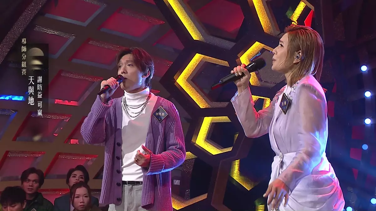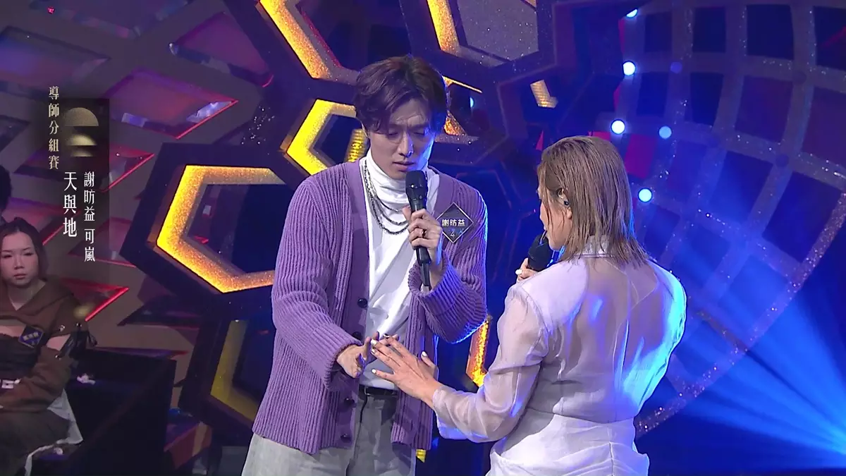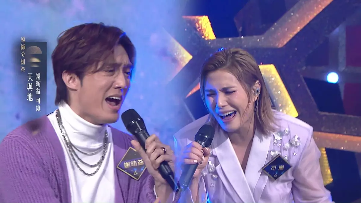 至於紫隊謝昉益和可嵐以音樂劇形式合唱《天與地》,導師高少華(銀老師)讚謝昉益高大靚仔,可嵐亦美麗動人,覺得兩人非常合襯,不過可嵐笑言「好姊弟喎」! 評審肥媽與周國豐都讚謝昉益咬字有進步,周國豐更指兩人的音樂劇演得很仔細:「尤其係可嵐嘅和音托到件事出嚟。」