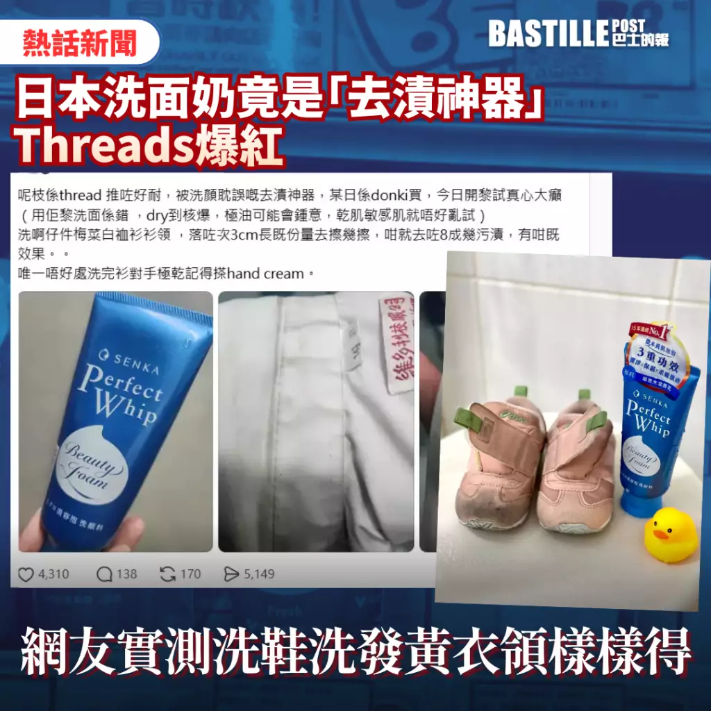 其中一名網民在社交平台稱實測使用「專科洗面奶」清潔小朋友的鞋仔,「擠在菜瓜布上刷30秒」已見效,盛讚「太好用」更稱「感動到流淚」所以要推介給各位爸爸媽媽!