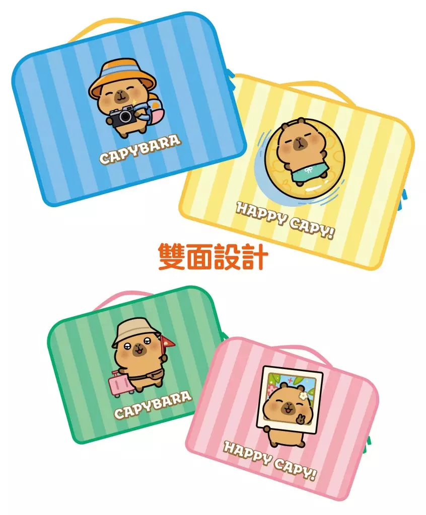 小黃豚最繁忙的瞬間,應該是旅遊的時候,專業旅遊玩家,自然需要行李收納套裝,一大一小,使用更加靈活,收納分類井井有條,即使不再旅途中,用來放不同季節的衣裳也絕對合宜。每個收納袋底面都有不同的小黃豚造型,分別是大裝的攝影師及弄潮兒,以及小裝收納袋的拖篋及打卡造型,一出門玩就精神,看來小黃豚跟我們也一樣呢!