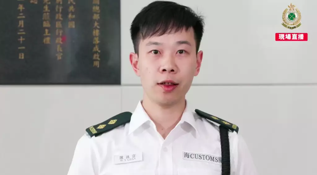 海關有組織罪案調查科特別調查第一組調查主任何廷俊。海關FB影片截圖