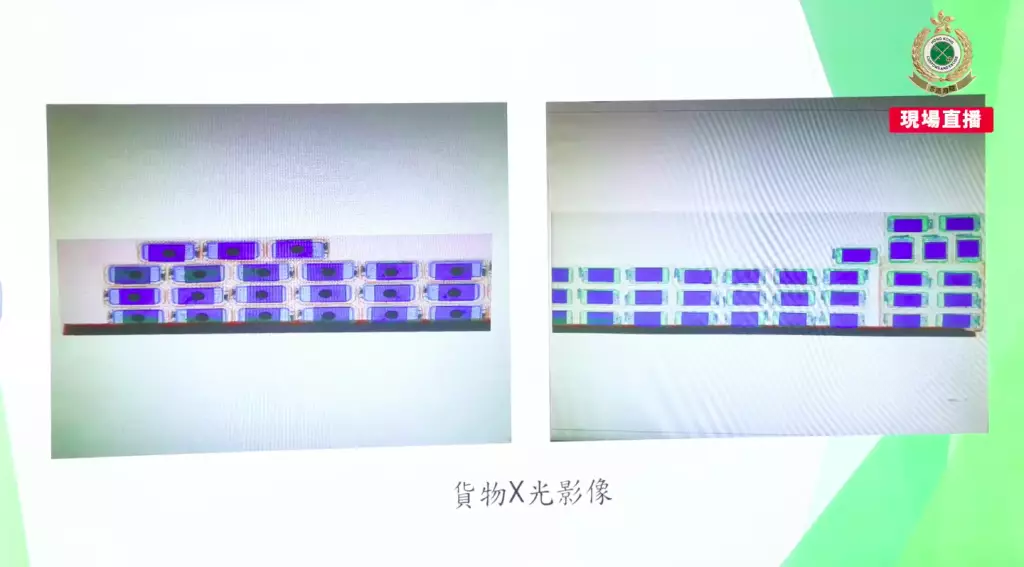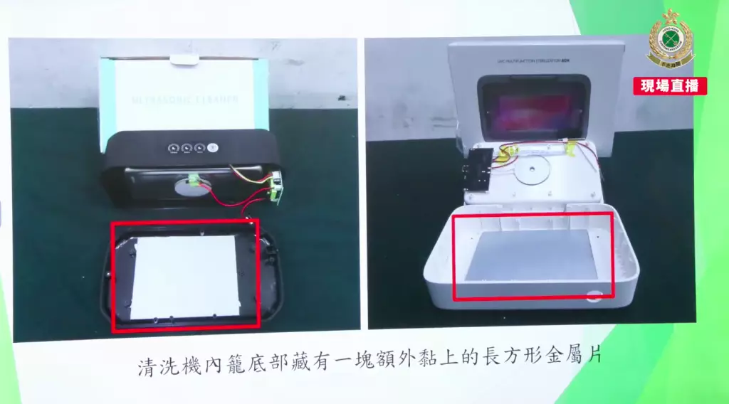機場科空運貨物組督察陳泳言說,海關根據風險評估及情報分析,鎖定有關兩票空運貨物作查驗。以X光機掃描合共138箱貨物時,發現貨物密度異常高,與報稱貨物不符。而清洗機外表無異樣,但內籠底部藏有無連接電動裝置的長方形金屬片,拆開發現金屬片內鑲有懷疑黃金薄片及白銀薄片。