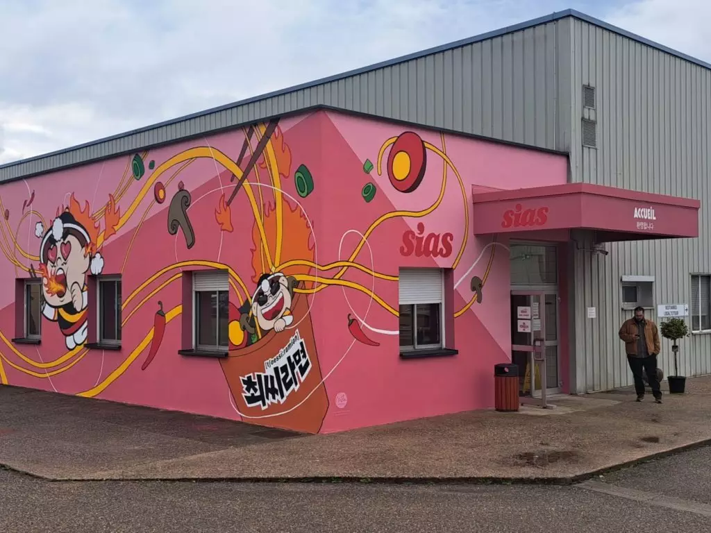 法國目前僅有一家工廠生產即食麵,位於阿爾薩斯維什(Wisches),由韓國企業Sias Alsace運營,每分鐘可生產200包。麵餅主要由麵粉、澱粉、麩質和水製成,經壓制、切割、蒸煮後成型。真正決定口味差異的是調味包,通常包含濃縮高湯、蔬菜粉和香料。