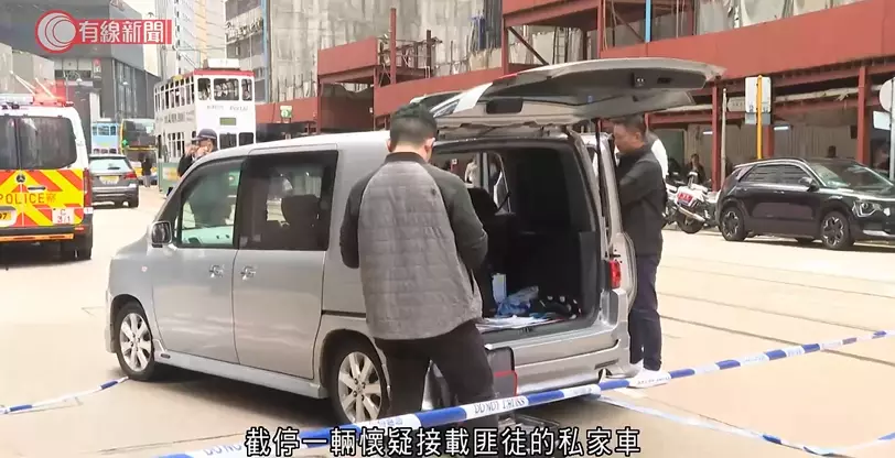 警方在現場接獲一輛與案有關的私家車, 並拘捕車上一名男司機。有線新聞影片截圖