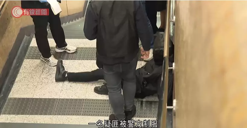 埋伏的警員當場制伏兩名涉案匪徒。有線新聞影片截圖