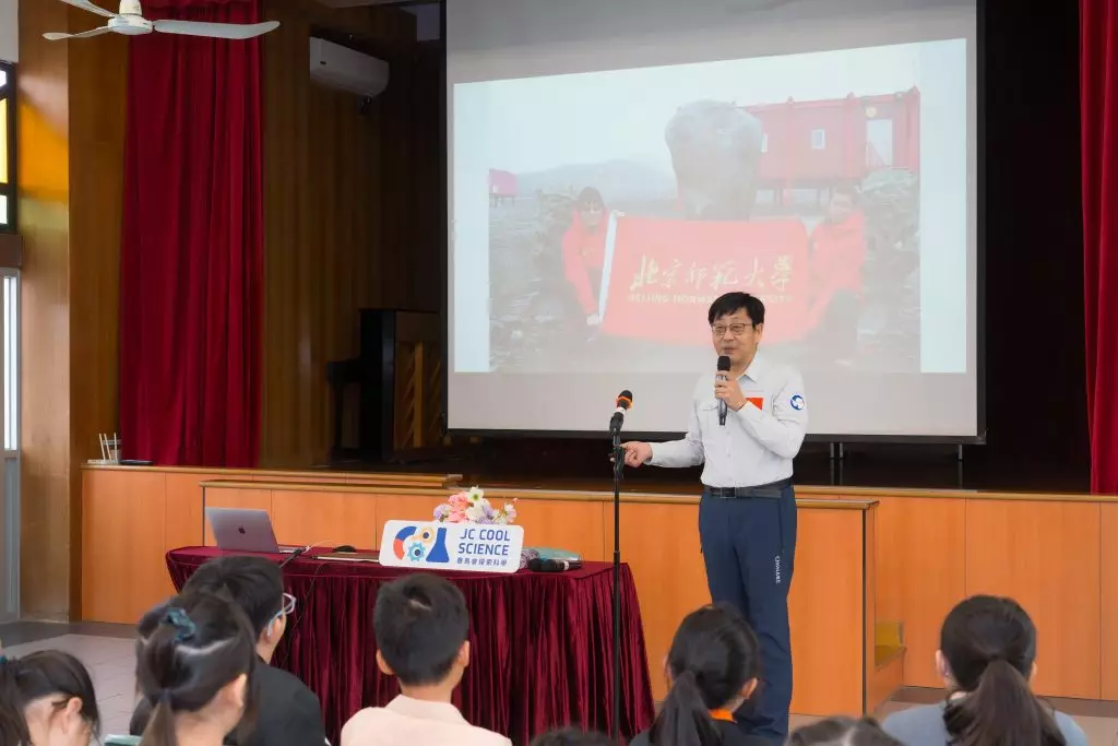 鄧教授也藉機向學生講述南極生態面對的挑戰。他提到,全球暖化正嚴重衝擊南極環境,帝企鵝因繁殖地依賴海冰而首當其衝。2016年哈雷貝冰架脫落,導致幼年企鵝死亡,約2.5萬隻成年企鵝失去家園,數年無法繁殖。鄧教授表示,觀察到同學們講座期間特別全神貫注,對大自然充滿好奇。他認為透過他親身講述、影像與實地學習三種方式結合,可以幫助香港中小學生建立理解自然、熱愛自然、保護自然的觀念。