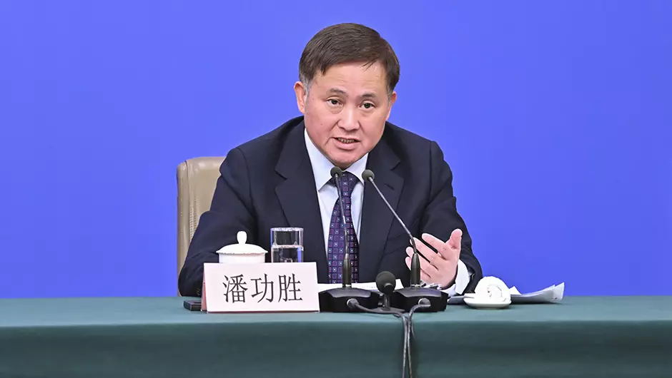 潘功勝出席人大經濟主題記者會。新華社圖片