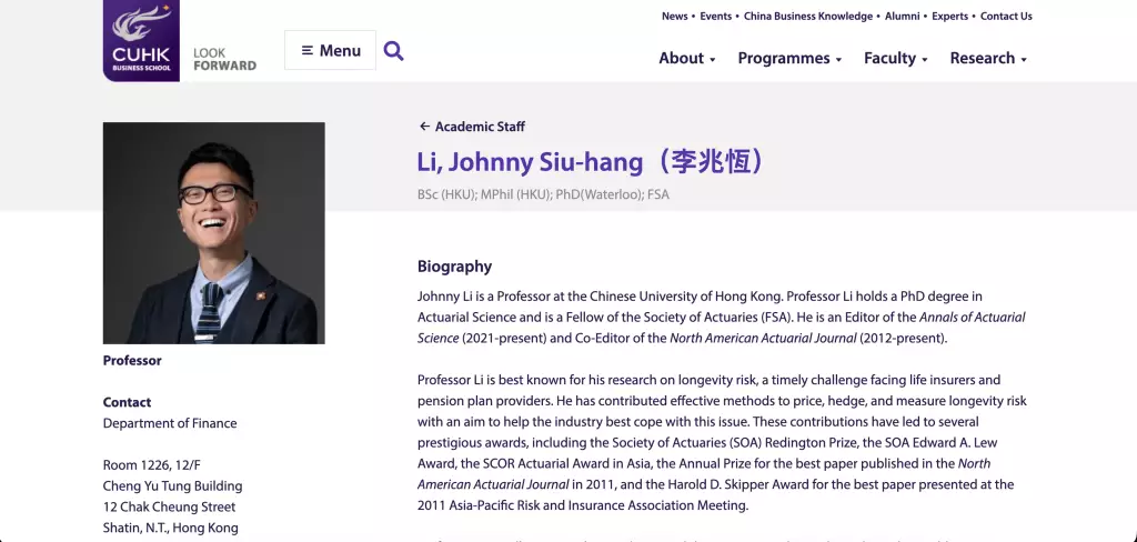 報道指涉案男子為中大教授李兆恆。中大網站截圖